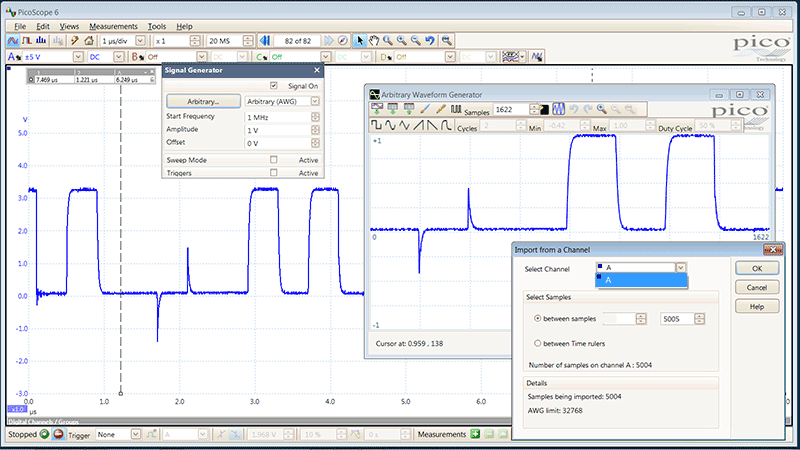 PicoScope3000D系列混合信号示波器包含16个数字输入,因此您可以同时查看数字和模拟信号。
